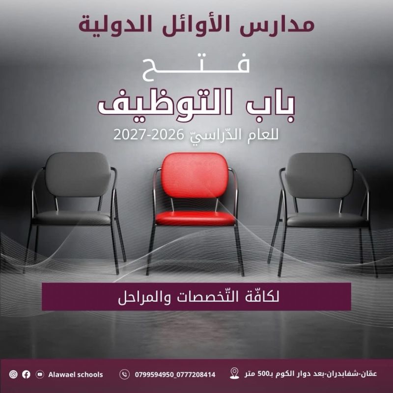 • فتح باب التوظيف في مدارس الأوائل الدولية للعام الدراسي 2026–2027